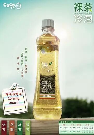 隨著飲品市場(chǎng)競(jìng)爭(zhēng)的白熱化,Coco都可在臺(tái)灣推出冷泡茶品牌“裸茶”,于2014年9月正式宣告產(chǎn)品上市。