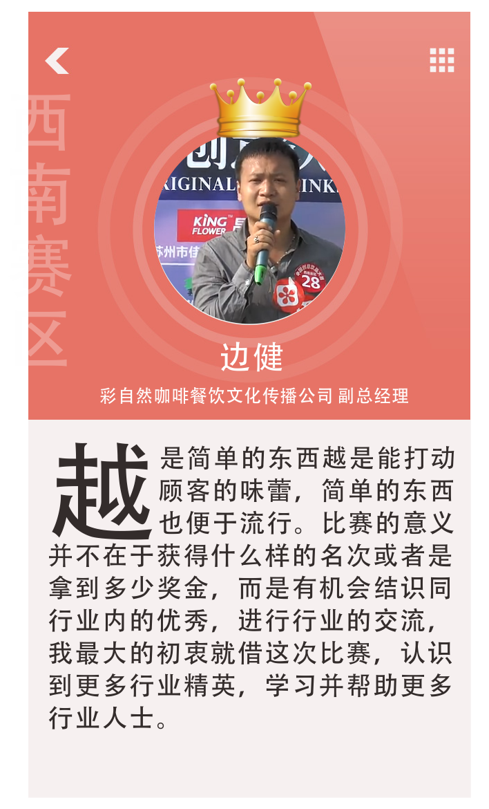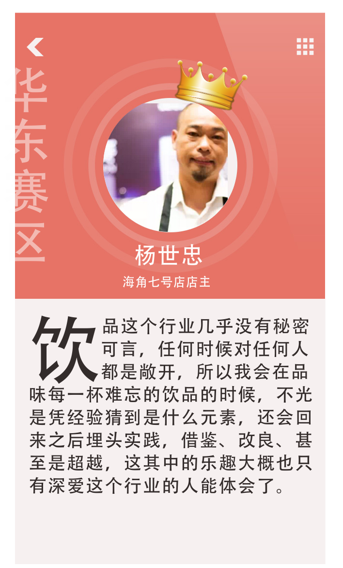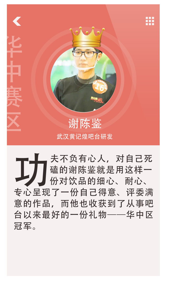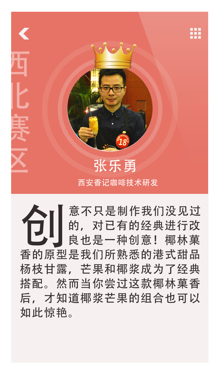 當(dāng)前位置:首頁(yè)>看資訊 >獨(dú)家報(bào)道>晶花杯中國(guó)創(chuàng)意飲品大賽回顧之冠軍篇