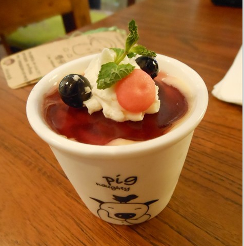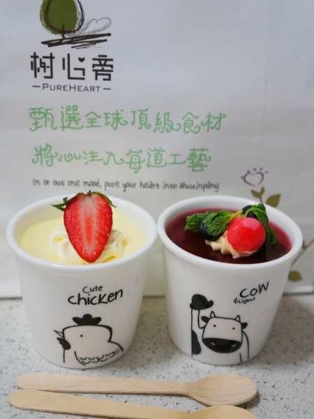 第一道甜品是樹(shù)心旁的人氣招牌“榴蓮芝士”。淡黃色的芝士盛在小小的白色瓷杯中,頂端一抹白色奶油,點(diǎn)綴紫色小花,誘人去品嘗,卻又讓人不忍打破這份美麗。