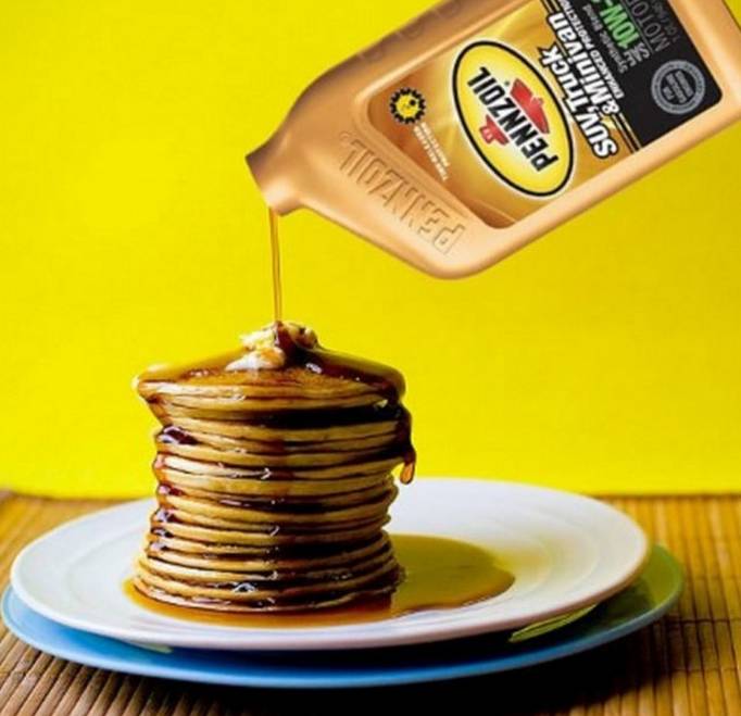 如果用普通的楓糖漿,煎餅會(huì)把糖漿吸收得太快,攝影師還來不及拍好,煎餅就把糖漿給“吃”完了。當(dāng)然,也有的攝影師會(huì)在煎餅表面涂一層疏水層,也能讓效果維持得更久