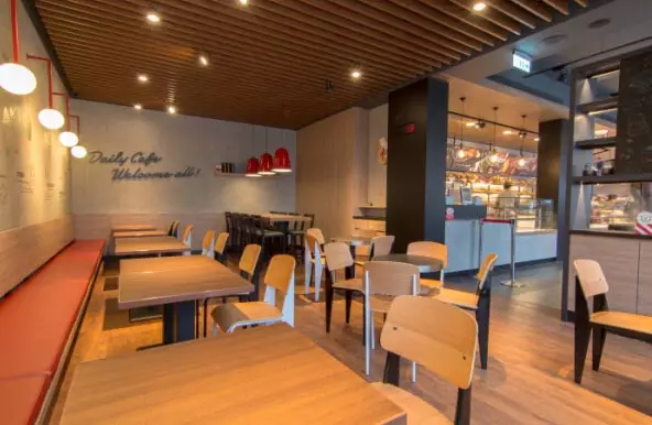 在采訪當(dāng)中,85℃ 方面告訴我們:二代店有兩種升級(jí)方式,一種是今年新開(kāi)的店鋪均被打造為二代店,另一種是改造原有門(mén)店。以面包點(diǎn)心為王牌產(chǎn)品的 85℃ 里,冷藏室、烘焙室等占據(jù)了 60% 的門(mén)店面積,現(xiàn)在這些空間被盡量壓縮、讓給顧客使用。