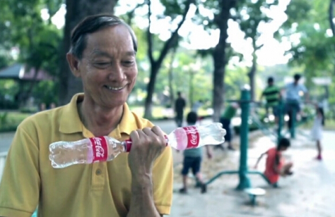我相信,老人真的會(huì)嘗試將飲料瓶裝滿(mǎn)水變身杠鈴。
