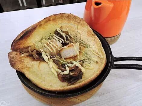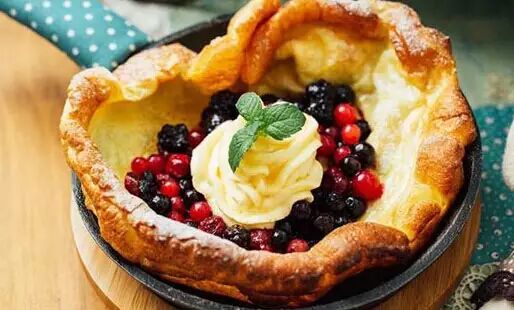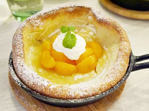 鐵鍋烤松餅的方式只在德國家庭中出現(xiàn),店主在日本游玩時(shí)發(fā)現(xiàn)有獨(dú)特的鐵鍋烤餅的烹飪方法,于是連鍋到面粉都悉數(shù)搬回,創(chuàng)制出特色的海鮮松餅以及水果松餅。并且以整只鐵鍋上桌的方式,頗具吸引力,立即在吃貨圈傳開。