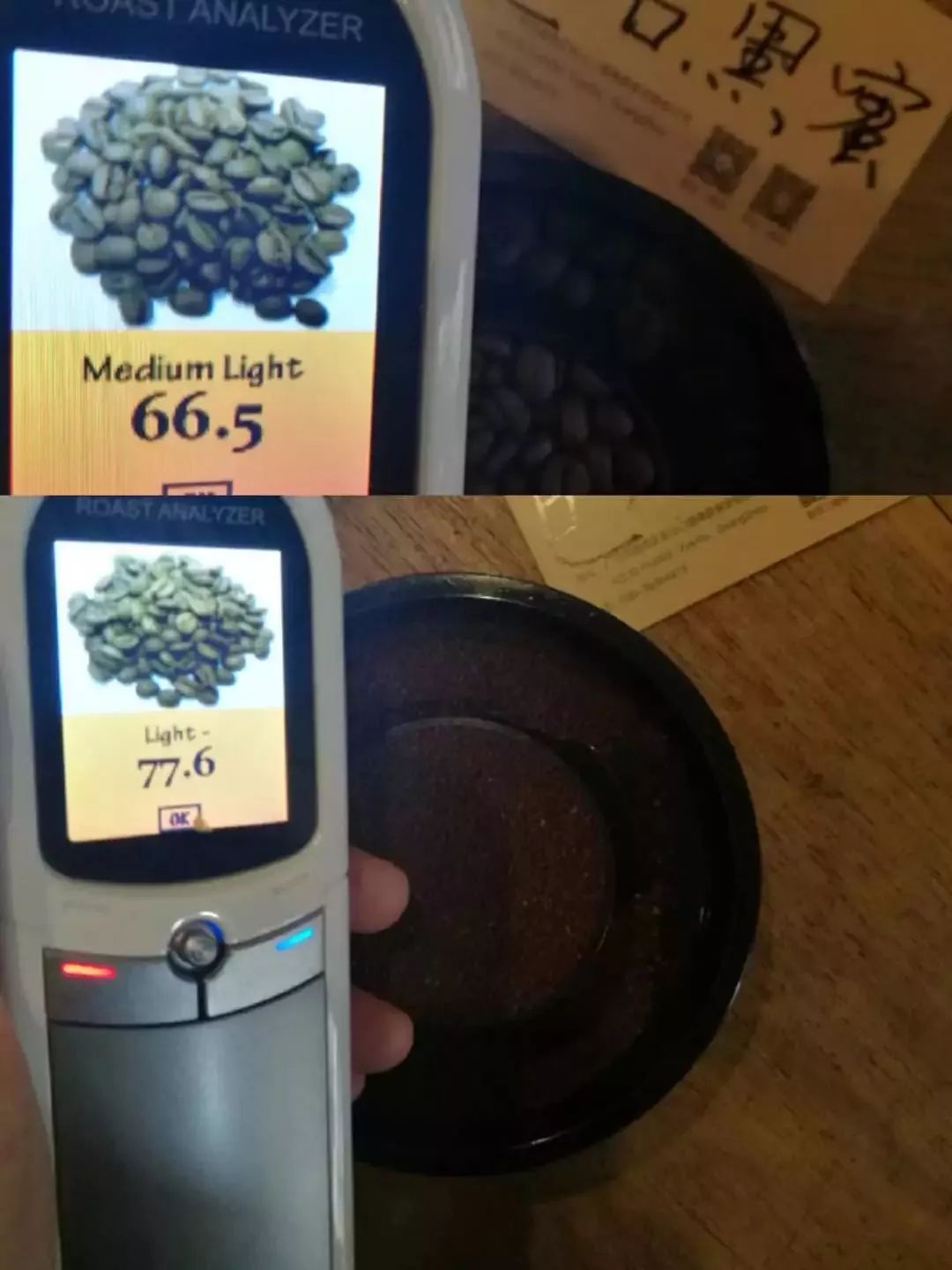 Agtron豆色值66.5(上圖),Agtron粉色值77.6(下圖),Roast Delta11.1值。| 風味對比* 杯測