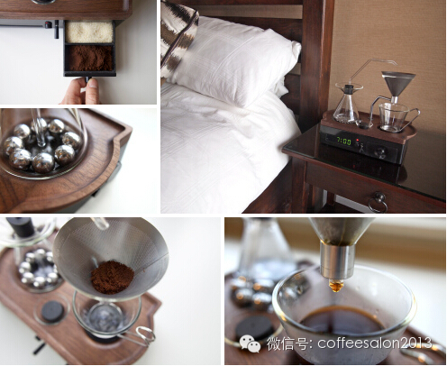 過去三年,有無數(shù)個(gè)居家小玩意出現(xiàn)在我們生活當(dāng)中來改善我們的生活質(zhì)素。而這個(gè)鬧鐘與咖啡壺結(jié)合體的創(chuàng)意是來自英國設(shè)計(jì)師Josh Renouf,這個(gè)小玩意集美學(xué)、實(shí)用性與舒適于一體。 這個(gè)產(chǎn)品名字是Barisieur,,由一個(gè)內(nèi)建計(jì)時(shí)器的鬧鐘與一個(gè)不銹鋼球形軸承感應(yīng)提高水溫的自動(dòng)注水系統(tǒng)一起運(yùn)作。熱水由一個(gè)人工吹制的玻璃壺排出通過一條玻璃制導(dǎo)水管注入到放有咖啡粉的不銹鋼濾杯中,咖啡液可即時(shí)滴入玻璃杯中。當(dāng)然,這個(gè)產(chǎn)品也是一個(gè)能正常使用的鬧鐘。 喜歡賴床的各位朋友不用親自動(dòng)手,只要調(diào)好鬧鐘,以后就能聞著咖啡香迎接新一天的光臨。