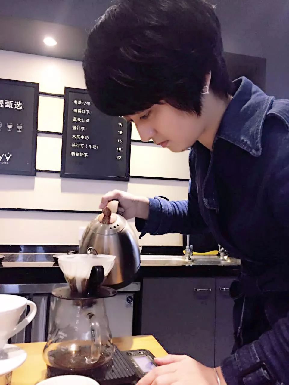 【咖啡經(jīng)歷】我來自于東莞南城,在我居住的附近便是雀巢咖啡的工廠,每當(dāng)經(jīng)過總會聞到那種速溶特有的咖啡味,眾多調(diào)味甜,有著和奶茶相近的味道,在我的感官中,那便是咖啡香。后來偶然的機會接觸到W TWO CAFE,一家專注于咖啡研磨、萃取、品鑒、評測的咖啡工作室。在那里我第一次品嘗了單品,原來,一杯好咖啡竟如此講究,從咖啡豆的挑選、稱量、研磨、沖煮,還有咖啡師專注的眼神,這一切刷新了我對咖啡所有過往的認(rèn)知,也是在品過一杯單品后一頭扎進了咖啡的坑,并且也成為了一個咖啡師。圈內(nèi)都流行著一句話:咖啡,它就是個坑??墒牵芏嗟目Х葞熀臀乙粯釉谶@個坑里玩得不亦樂乎,且不準(zhǔn)備爬出來的那種。所以,我對咖啡的態(tài)度是:如若被埋,請深埋!李曉東(投票編號12)中山賽區(qū) 尋晚咖啡會館【參賽宣言】咖啡沖煮的終極追求是精神與物質(zhì)如何完美合一。