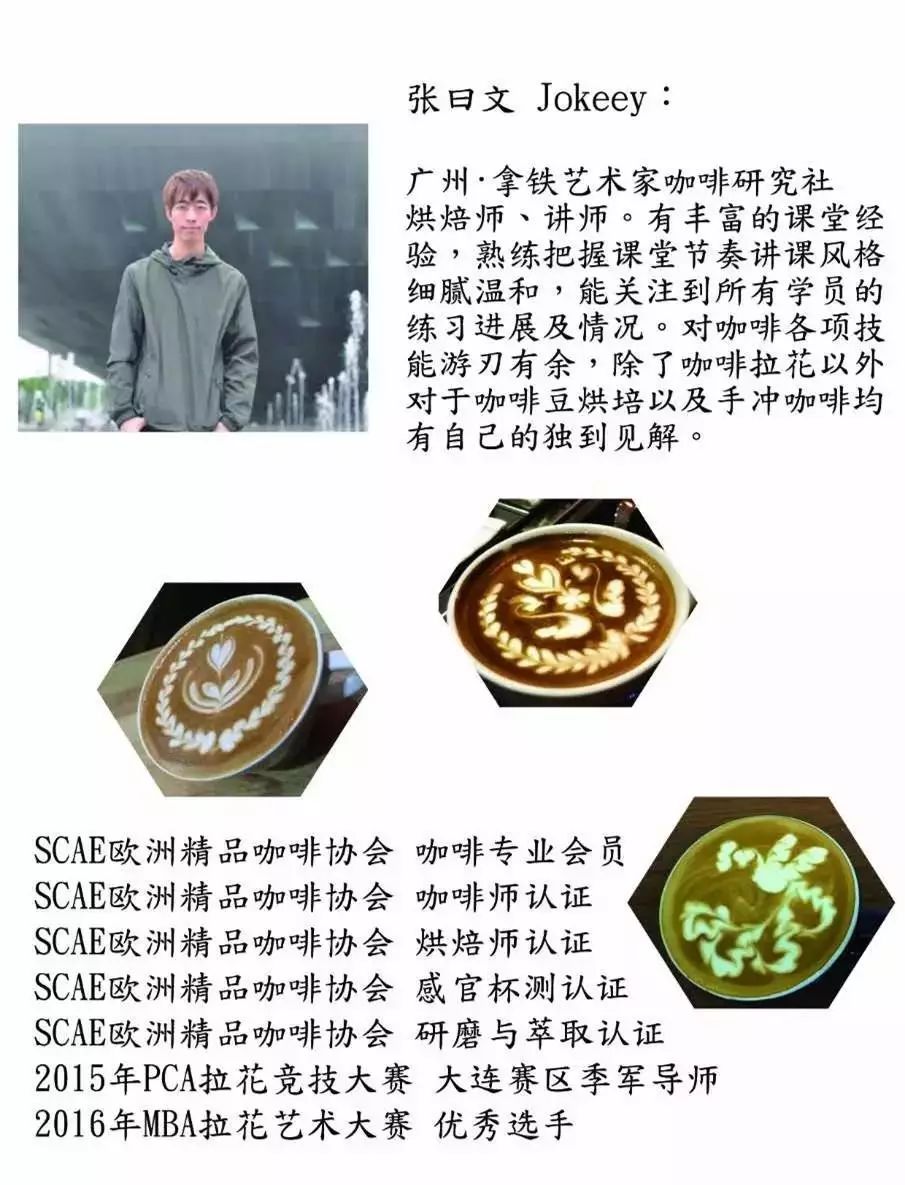 2016 PCA咖啡拉花大賽北京賽區(qū)評委2017世界拉花藝術(shù)大賽華北賽區(qū)冠軍2016中國.意大利咖啡拉花藝術(shù)大賽冠軍2016中國“阿瑪菲杯”頂級拉花爭霸賽冠軍2016 MBA咖啡拉藝術(shù)大賽藝術(shù)吧臺冠軍2015 PCA咖啡拉花大賽濟南賽區(qū)冠軍北京叁拾而立烘焙學(xué)院創(chuàng)始人之一咖啡拉花輪創(chuàng)作者程昱嘉