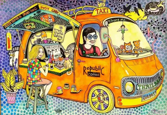 一點點酷,它只是安安靜靜的在那兒。卻讓我覺得就是不一樣。Republic coffee,來到清邁的第五年。老板Krit曾在曼谷是一名演員,去過中國上海,與我們的發(fā)哥拍過戲。因為不喜歡在曼谷生活的快節(jié)奏,喜歡清邁,便駕著自己改裝的這輛咖啡車一路駛來。