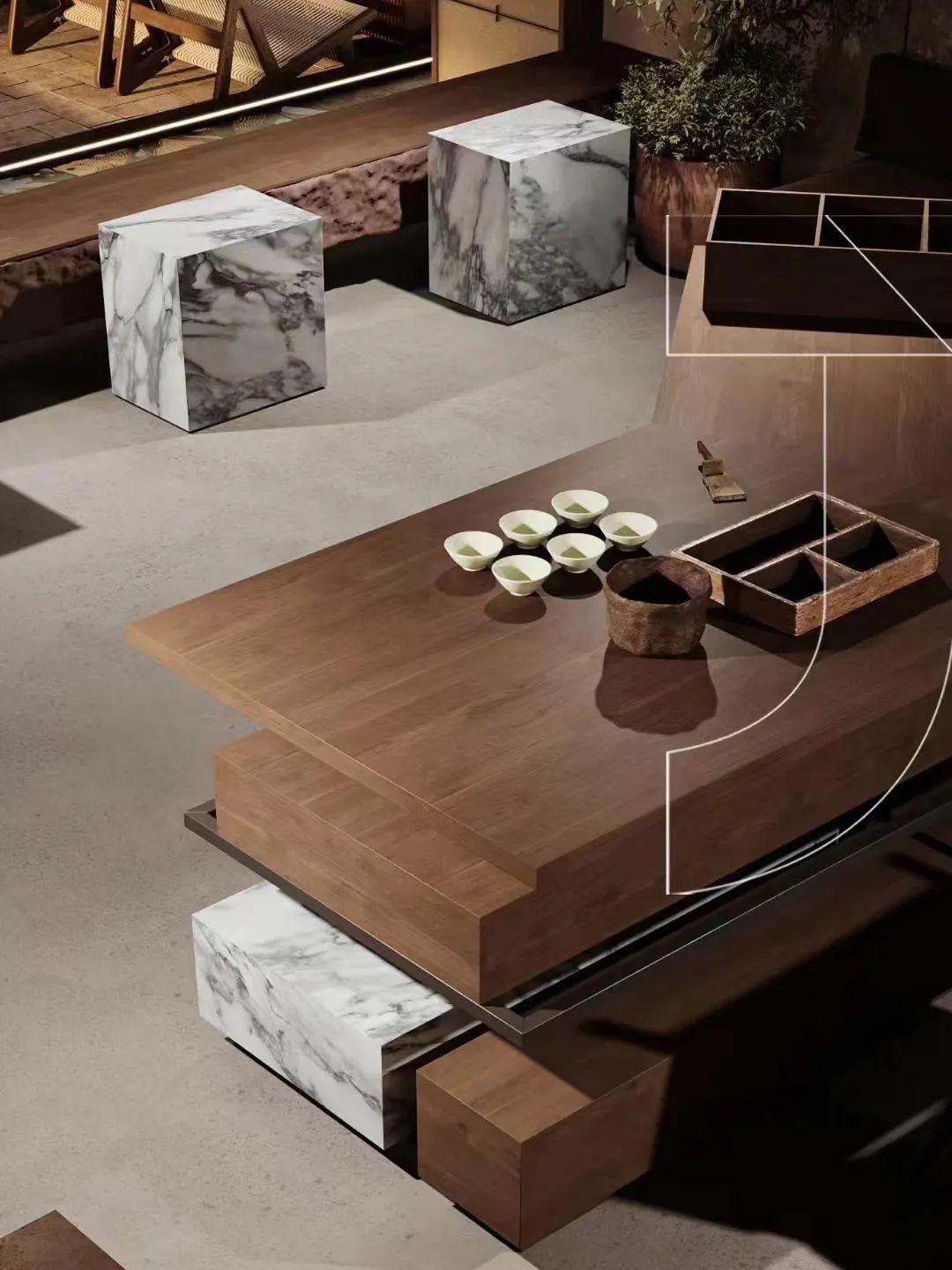 “際淵的茶”深圳東海店而對(duì)中式意韻的呈現(xiàn),際淵集中在飲茶空間與產(chǎn)品細(xì)節(jié)上。際淵的每一家門(mén)店均有獨(dú)立設(shè)計(jì),如深圳東海店以黑金為主題色,將復(fù)古與現(xiàn)代簡(jiǎn)約相結(jié)合;最新開(kāi)業(yè)的深圳益田假日廣場(chǎng)店,店內(nèi)模擬出雨落水簾,并以實(shí)木與大理石碰撞,營(yíng)造出自然本真的古樸感。