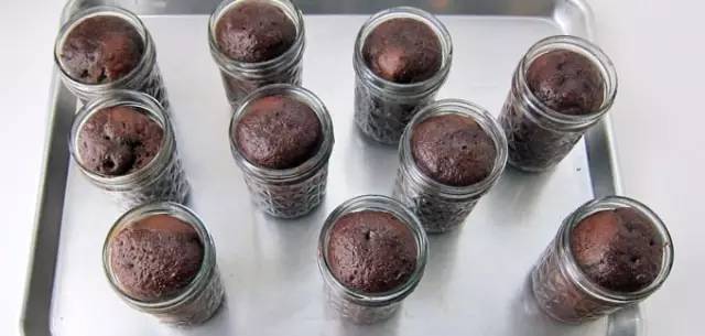 可可蛋糕體①首先將低粉、泡打粉、小蘇打、可可粉、食鹽拌勻過篩,備用②將清水、玉米油、糖粉、雞蛋、香草精混合倒入打蛋盆中,用蛋抽快速抽打混合物,至混合物完全乳化(油與水完全融合)③將步驟①的混合物加入到步驟②的混合物中,用刮刀快速翻拌混合物,將混合物拌勻④梅森瓶內(nèi)刷上少許融化黃油(配方份額外),灌入少許低粉(配方份額外),使瓶內(nèi)粘滿面粉⑤將步驟③中的混合物灌入梅森瓶中,約6分滿;烤箱預(yù)熱上下火175度,烤箱中層烘烤18-20分鐘,取出放涼,放涼后倒扣梅森瓶,將蛋糕取出,備用