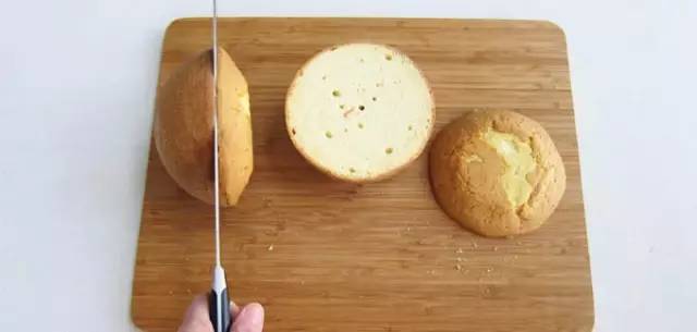 ①首先制作蛋糕體部分,制作方法與草莓蛋糕的蛋糕體制作方法一致②6寸半球形模具內(nèi)篩入少許低粉(配方份額外),將模具內(nèi)壁涂滿面粉,將步驟1中的面糊分別填入2個(gè)球形模具之中,送入烤箱烤熟,取出后放涼、脫模
