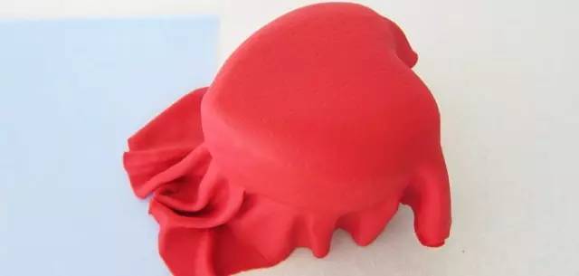 裝飾①取約1000g翻糖膏,加入少許紅色色素,調(diào)成紅色糖皮,搟薄后在表面壓出凹點(diǎn)