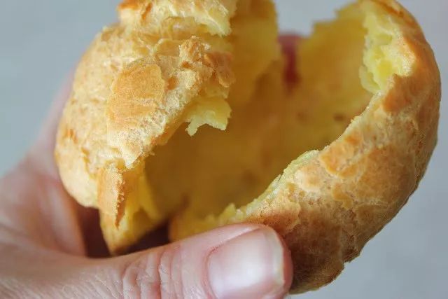 如何讓泡芙皮的口感更硬脆?最簡單的方法就是充分烘烤確認是否烘烤完成后,關(guān)掉烤箱但先不取出泡芙,用余溫繼續(xù)加熱5min左右,至硬脆狀態(tài)。只是以這個狀態(tài)擠入奶油后會慢慢變得潮軟,所以將奶油餡擠進去之后要盡快吃掉。此外將低筋粉一半的量替換成高筋面粉,也可以將餡皮烘烤至硬脆的口感。