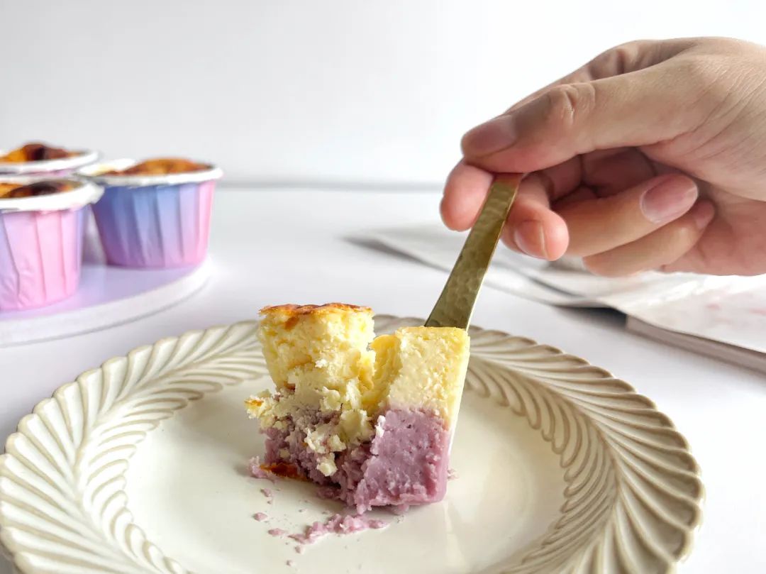 這次用空氣炸鍋?zhàn)鰜?lái)芋泥巴斯克杯子蛋糕,我不說(shuō),你們肯定也以為是用烤箱來(lái)烘烤的,表面被烤制焦糖色,是巴斯克的標(biāo)志,而冷藏過(guò)后,才是吃它的最美味方式。對(duì)半切開(kāi),兩種顏色的鮮明對(duì)比,上層是淡黃色的香濃巴斯克,下層是軟糯的芋泥餡,一口下去,兩種口感在嘴巴里交集,滿嘴都是奶香芋香,讓人一口接著一口,停不下來(lái)。巴斯克的做法對(duì)新手和烘焙小白都太友好了,基本材料攪一攪,烤一烤,就成功。但大家肯定也會(huì)擔(dān)心熱量的問(wèn)題,那做成小杯子的造型,小巧可愛(ài),一次一杯,剛剛好~芋泥巴斯克(空氣炸鍋)↓視頻版教程↓↓圖文版教程↓芋泥餡芋頭200克黃油10克煉乳12克糖15克淡奶油35克牛奶65克紫薯粉5克芝士糊奶油奶酪120克糖15克雞蛋1個(gè)淡奶油100克玉米淀粉5克①芋頭切小塊,放入蒸鍋,蒸熟?②蒸熟的芋頭加入黃油,煉乳,糖,淡奶油和牛奶,攪打成泥狀做好的芋泥顏色是淺灰色了,加入適量的紫薯粉,調(diào)一下顏色裝入裱花袋,備用③軟化的奶油奶酪加入糖,攪拌均勻打入一個(gè)雞蛋,繼續(xù)攪打均勻順滑④倒入淡奶油,低速攪拌均勻最后加入玉米淀粉,增加面糊的凝固度,低速攪拌均勻即可做好的芝士糊可以過(guò)篩一兩遍更加細(xì)膩,裝入裱花袋⑤在杯子中擠入三分之一的芋泥餡再擠入芝士糊,大概8,9分滿⑥放入空氣炸鍋,先200度,烘烤6分鐘左右,上色至焦黃色蓋上錫紙,繼續(xù)160度,烘烤16分鐘⑦出爐的杯子蛋糕,非常飽滿,慢慢會(huì)回縮一點(diǎn),放入冰箱冷藏4小時(shí)以上再品嘗,口感更好表面的焦黃非常誘人,一刀切開(kāi),淡黃色的芝士和淺紫色的芋泥搭配一起,也太好看了吧~一口下去,香濃的芝士在口中融化開(kāi)來(lái),迎接著芋泥的綿密,一口接著一口,一下子吃完一小杯了~如果有其他疑問(wèn)請(qǐng)?jiān)谙路搅粞越o我們看到后一定盡力回復(fù)大家?(^?^*)