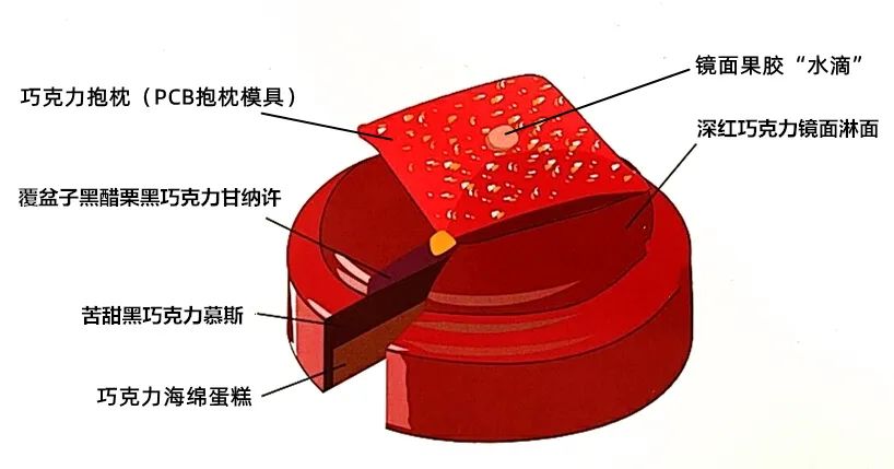 nto top .4.Glaze with the dark red chocolate glaze.5.Decorate with a PCB velour cushion ( sprayed with red chocolate ) and a few points of gold leaf.