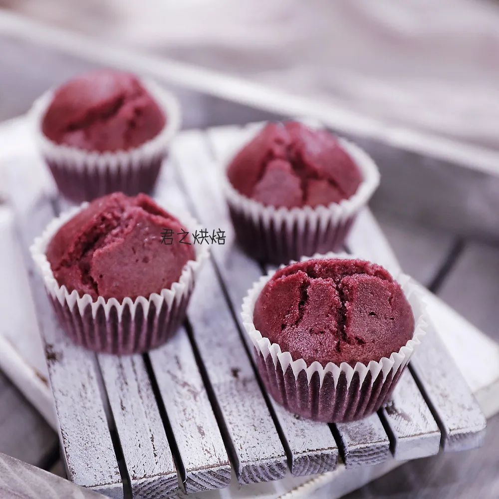攪動面糊釋放氣體,使面糊體積重新變小。然后將面糊倒入模具中。我用的六連蛋糕模,將紙托放入模具內(nèi),面糊倒入紙托6-7分滿,做了4個。你可以用其他大小合適的模具,比如蛋撻模、蛋糕紙杯等。不需要二次發(fā)酵,直接蒸??梢杂谜翦佉部梢杂谜艨鞠洹H绻谜翦?,冷水上屜,蓋上鍋蓋,大火上汽以后,繼續(xù)大火蒸15分鐘即可。我用的君焙F1蒸烤箱,大蒸汽功能預(yù)熱5分鐘以后,將面糊放入,繼續(xù)蒸15分鐘。蒸好以后等2-3分鐘再揭蓋/打開蒸烤箱將黑米糕取出。Tips:面糊只需要進(jìn)行基礎(chǔ)發(fā)酵。蒸之前不需要再次發(fā)酵,蒸的過程中面糊會鼓起來,成為質(zhì)地綿密細(xì)膩的黑米糕。你也可以將面糊倒入模具以后,發(fā)酵15分鐘,等面糊微微長大以后再蒸。蒸出來的米糕會膨脹得更大,表面會有更明顯的裂痕。但切記不要發(fā)酵過度,不要發(fā)酵到像基礎(chǔ)發(fā)酵那種程度,那樣蒸出來米糕會塌。 預(yù)覽時標(biāo)簽不可點