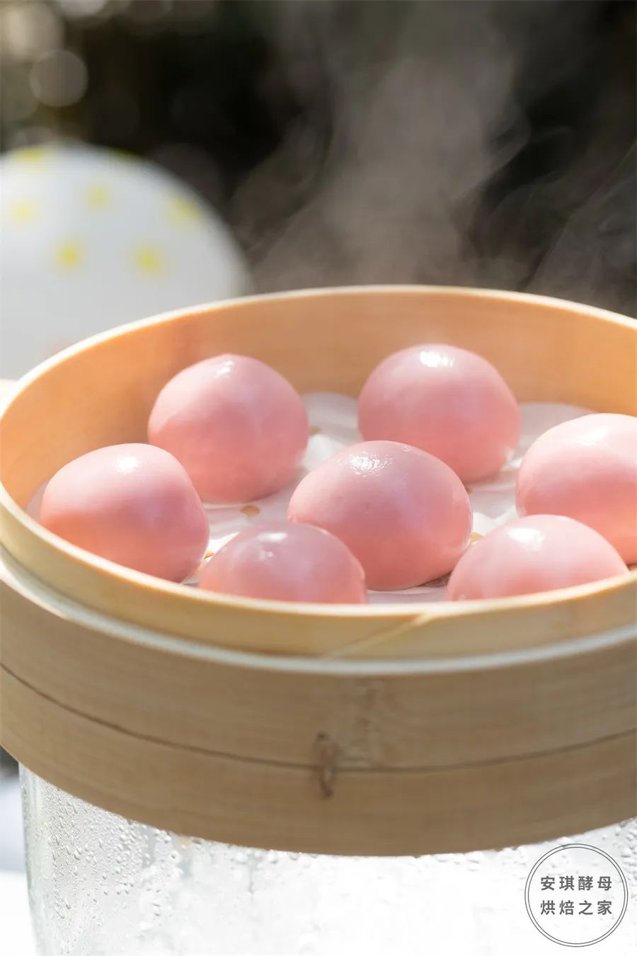 ⑥入鍋蒸25分鐘,撒上剩余的櫻花餅干碎即可。