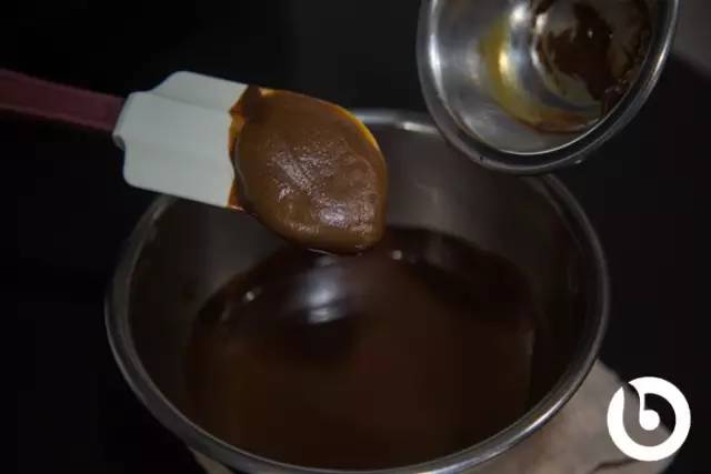 ?將巧克力榛子醬冷卻至40度,加入之前打發(fā)到五成的淡奶油。