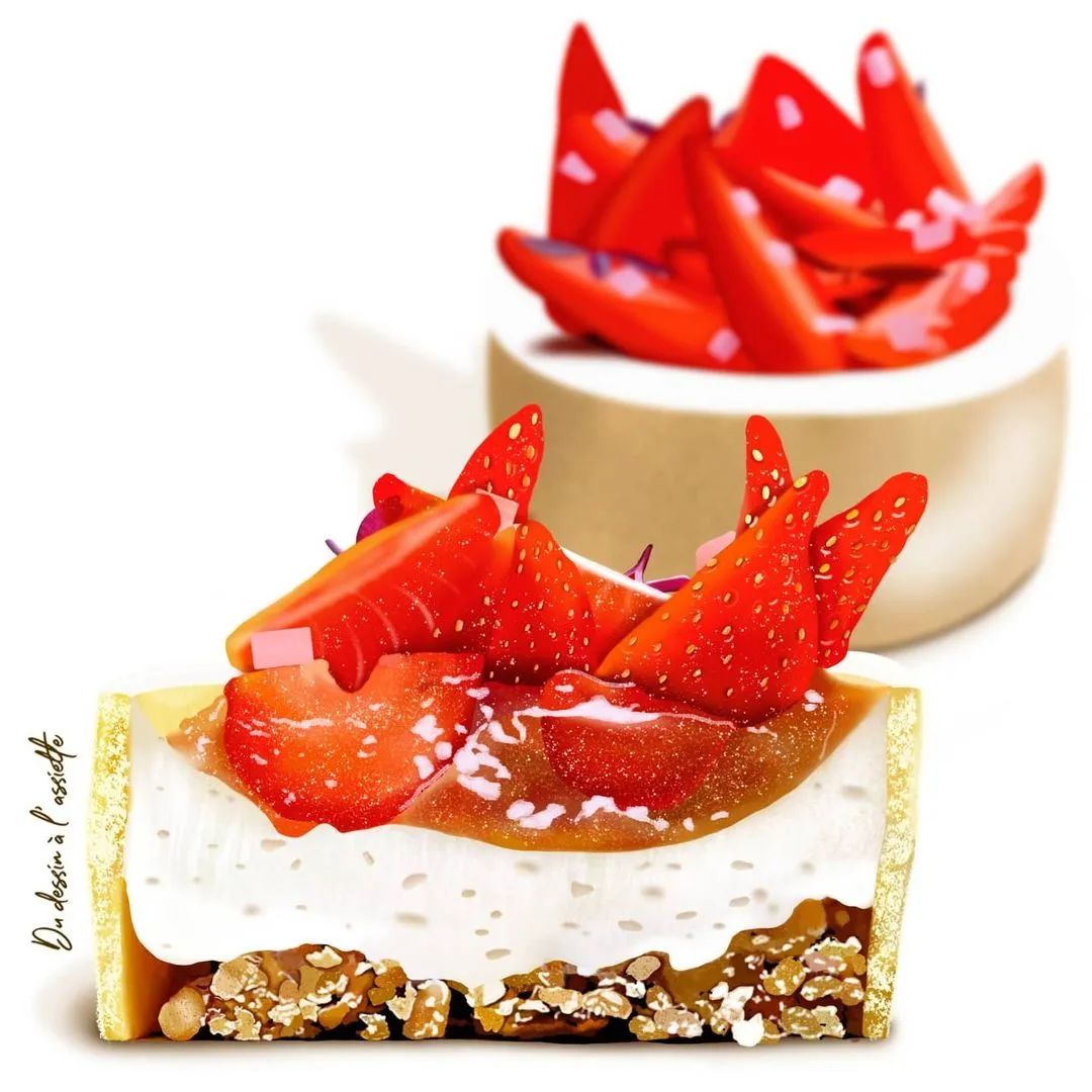 這小哥的名字是Sasha Nogueira,畢業(yè)于巴黎費昂迪,別人從這畢業(yè)之后基本都會從事烘焙工作,要么打工要么當(dāng)老板,這小哥卻獨辟蹊徑,把各大名店名chef的作品用“畫”的方式再次展現(xiàn),看下邊這些圖泥萌能感受到有多么一致!