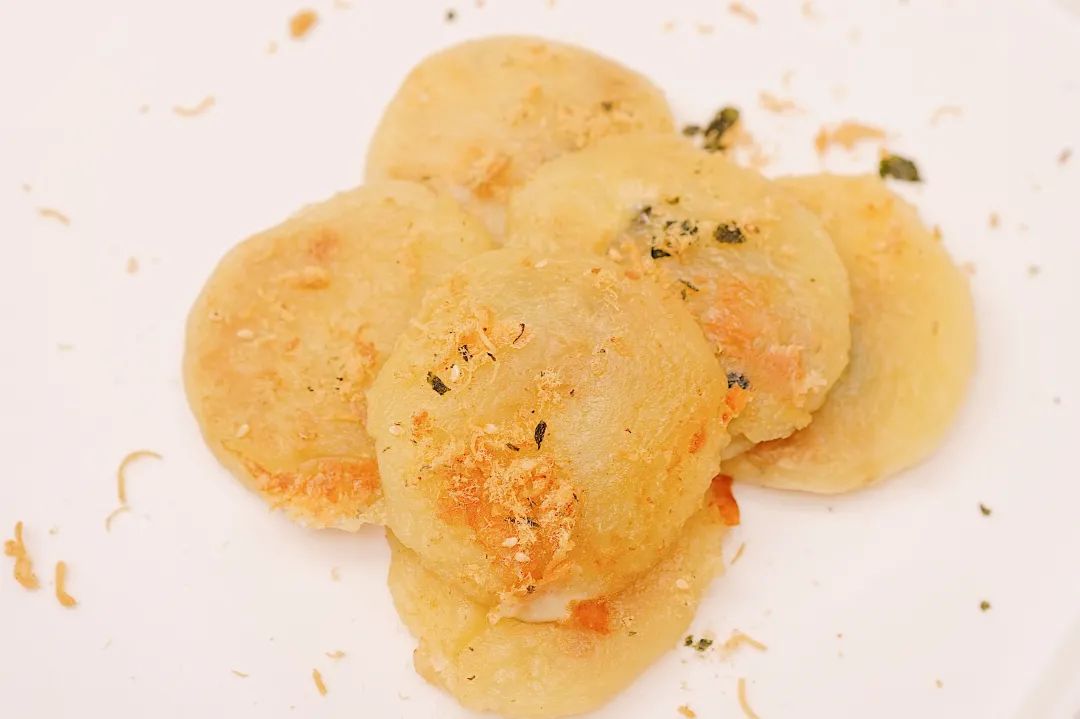 煎熟的土豆餅再撒上一些海苔肉松,口感更加豐富。