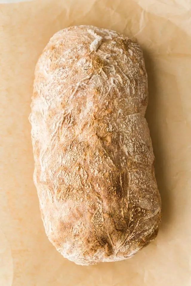 恰巴塔是用經(jīng)長時間低溫發(fā)酵的“液種”制作而成,因此面包的組織有著大小不一的光澤孔洞,外脆內(nèi)軟的微酸口感,是它的迷人之處。