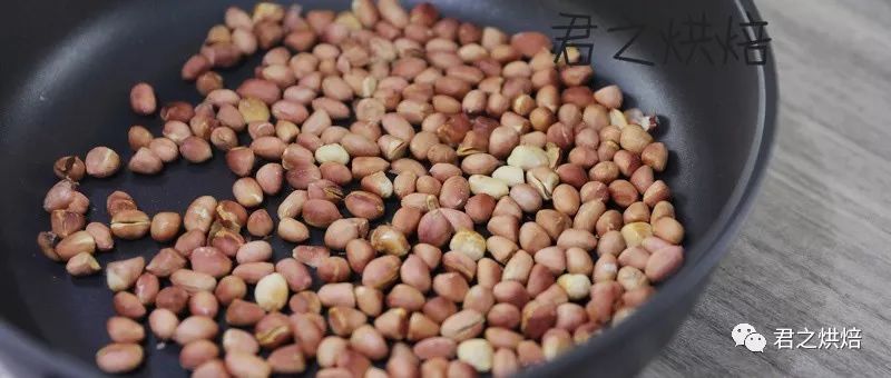 首先將花生仁用烤箱上下火160℃烘烤20分鐘左右,烤熟烤香(不同烤箱情況不同請酌情調整烘烤時間),稍冷卻并搓掉紅衣后,放入烤箱保溫在50℃左右。