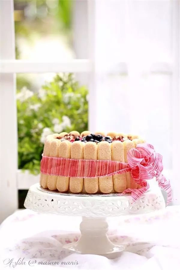 裝飾方法就是——用手指餅干圍一圈,再用絲帶綁上~~~要切的時(shí)候把絲帶解開(kāi),順著手指餅干切~~~以下贈(zèng)提拉米蘇千層蛋糕配方一個(gè),畢竟有了千層蛋糕才需要用手指餅干裝飾千層蛋糕玩~~~~