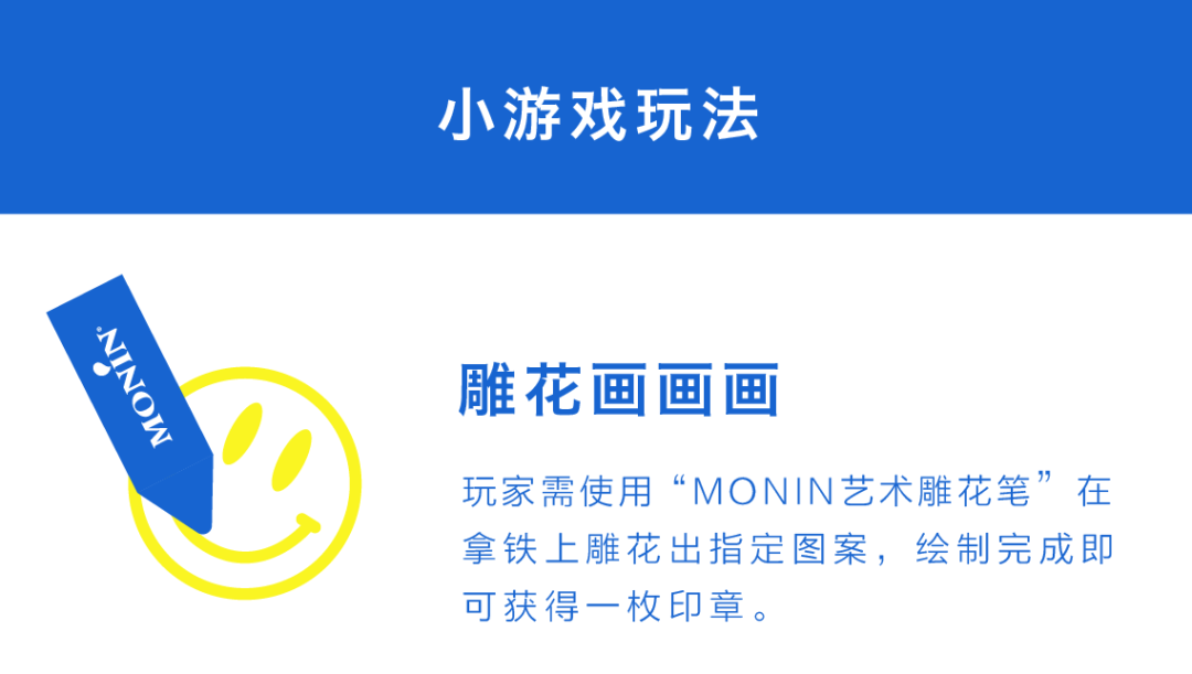 2021上海咖啡季已經(jīng)拉開(kāi)帷幕除了享受半價(jià)咖啡我們還為你準(zhǔn)備了逛館的“彩蛋”2021.3.25 - 2021.04.03集結(jié)了27家店串起一場(chǎng)咖啡派對(duì)玩游戲、集印章、打通關(guān)、贏大獎(jiǎng)足夠有趣才敢邀請(qǐng)你來(lái)!△ 隨手保存參與游戲活動(dòng)的咖啡館清單游戲指定小游戲指定道具:MonIN 藝術(shù)雕花筆系列為拉花藝術(shù)量身定制,創(chuàng)意咖啡從未如此輕松!