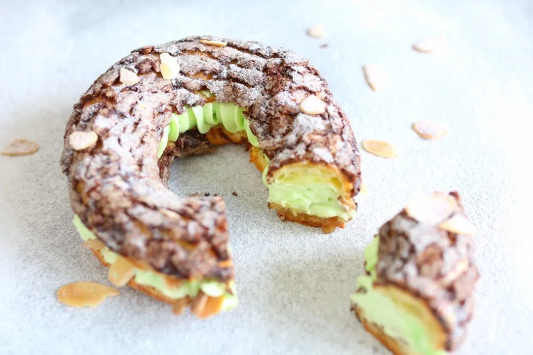 酥脆的外皮夾上絲滑的奶油,口感集松化及嫩滑于一身,佐以果醬的清香,誘惑感十足。★巴黎車(chē)輪:布蕾斯特泡芙★▽