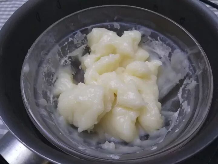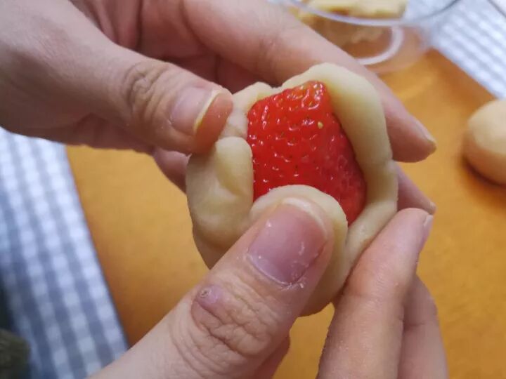 上了一周班的感覺身體被掏空唯有一帖酸爽軟萌顏值逆天的水果大福能用滿滿維他命C治療我買到體虛的疲憊小身軀~爆量維他命C解乏法寶一整顆水果大福這種點心在日本通稱“大?!?,糯糯的香軟外皮里,常搭配豆沙或奶油霜包裹的新鮮水果粒,它飄洋過海流行到了臺灣、中國,名稱也開始有了變化,雪莓娘、雪媚娘,其實都是它的別名哦~~今天我們制作三款包入一整個水果的版本~ 顏值跟維他命C都滿滿噠!參考量:可做6-8個大福外皮:糯米粉150g玉米淀粉45g牛奶(或水)255g細(xì)砂糖45g無鹽黃油(或玉米油、色拉油)15g熟糯米粉:糯米粉30g內(nèi)餡:切面好看的水果(小型柑橘、奇異果、草莓等)適量白豆沙(或紅豆沙、綠豆沙)約500g溫馨提示:本次使用的是裱花專用的白豆沙,甜度比較低,吃起來不膩,在某寶還有很多白豆沙現(xiàn)成品,大家可依照口味與需求選擇哦~①準(zhǔn)備工作:將橘子、奇異果去皮,草莓洗凈,稍微晾干表面水分備用。②制作雪莓娘外皮:將黃油以外的材料在碗里混合均勻,蓋上保鮮膜放入鍋中,加蓋隔水以中火蒸15-20分鐘,熟透后的糯米面團(tuán)應(yīng)該如下圖一般,是略帶半透明質(zhì)感的,如果還有白色粉漿顏色表示還沒熟透,再蓋上鍋蓋蒸到完全熟透即可。-出鍋后,先蓋上保鮮膜保濕避免面團(tuán)干燥,放在一邊備用。③制作熟糯米粉:取平底鍋,將糯米粉30g放入鍋中,中小火翻炒約3分鐘,炒至微微有米香冒出,顏色比生粉略深一些,但注意別炒過頭了,炒過了顏色會轉(zhuǎn)黃,這樣就不好看咯!-炒好的熟糯米粉倒入碗里備用,在待會制作的時候,可以用來防止面團(tuán)沾粘。④將剛才放置一旁的糯米面團(tuán)放在攪拌盆里,加入室溫軟化的無鹽黃油,搓揉至面團(tuán)將油脂完全吸收后,沾上一層熟糯米粉備用。-搓揉的手法可以參考動圖,把沒沾油的內(nèi)層往外翻,沾油的外層往里折,可以加快油脂吸收速度。糯米面團(tuán)里面的水分&油脂比例多,會比較不容易變硬,但也比較不好操作,這個配方的水分跟油脂適中,口感清爽Q彈、易于操作,最適合新手嘗試?yán)玻?img data-copyright="0" data-ratio="0.75" data-s="300,640" src="https://mmbiz.qpic.cn/mmbiz_jpg/OXiaYrKsaf0LHLxxTUuibZZxialjnhDLRqZ0MR0Ciagg6L9XFfNPiaOUSOlic4hxibc7mQBqAUvpSc6QPHkibnibtDJeTGQ/640?" data-type="jpeg" data-w="1280" />⑤制作餡料:取一團(tuán)準(zhǔn)備好的白豆沙在手中揉圓,略壓扁后,包入整顆水果備用。(嗯......做出了一群蛋頭)⑥開始組裝:揪一小球糯米面團(tuán),沾一些熟糯米粉在表皮上,用搟面杖搟成大約2-3mm的皮。⑦包入剛才制作好的水果豆沙蛋頭餡兒球,像捏包子一樣收口,這種糯米質(zhì)感的皮,容易在收口處厚成一坨,為了口感(以及顏值)著想,可以用廚房剪修剪一下太厚的部分,做好之后,記得在大福的屁股底部沾一些熟糯米粉防止沾粘。小TIP:制作水果大福跟包子不一樣的地方在于,收口處是在成品的下方,所以像是包裹草莓這種水果的時候,收口處必須在草莓蒂這一側(cè),成品切開的時候,草莓尖才會在上方哦!想切開秀朋友圈的小伙伴切記切記~~~(嗯嗯......又是一群蛋頭,怎么感覺似曾相識?)不得不說這款甜品蘊藏了一種曖曖內(nèi)含光的品質(zhì)做好的時候看起來不怎么樣但是切開來馬上變身妥妥的一枚顏值小可愛?。?!朋友聚會的時候,抖包袱甩高潮全靠它啦~瞧~是不是美得讓人心動?清甜豆餡包藏著酸甜的水果在飄著一絲奶香的軟Q外皮內(nèi)搖曳生姿~以后誰敢說你不賢惠就做這個塞住他的嘴?。?!溫馨提示:大福這種糯米皮的點心,最好當(dāng)天做當(dāng)天吃,糯米皮的特性就是做好之后外皮會慢慢變硬,這個方子密封冷藏隔天還能保持一定的柔軟度,但口感還是會剛做好的狀態(tài)有點區(qū)別,這是不可避免的喲~~建議每次少量制作盡快食用,密封冷藏存放不超過3天哦哦哦! 預(yù)覽時標(biāo)簽不可點