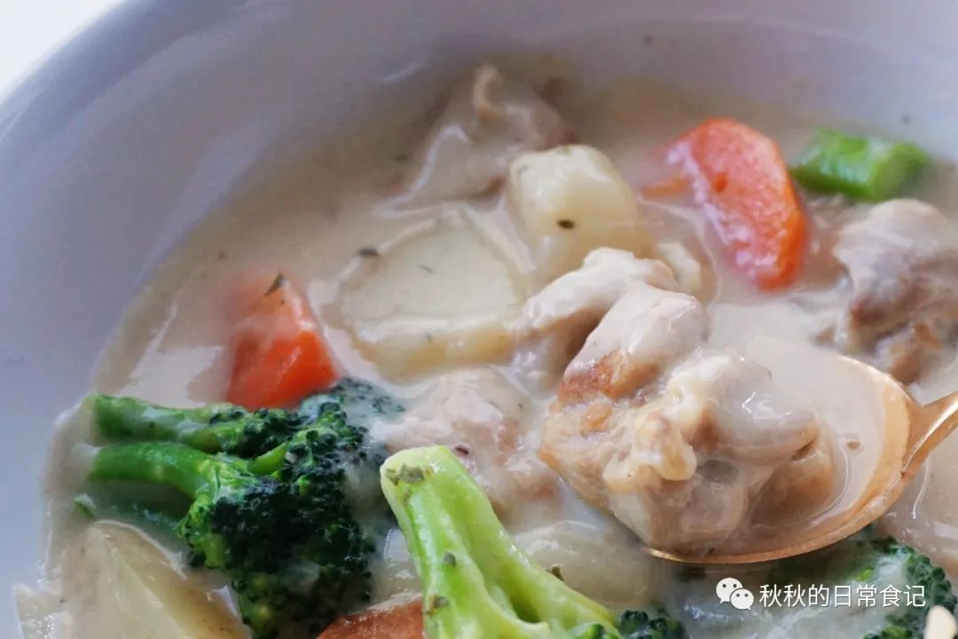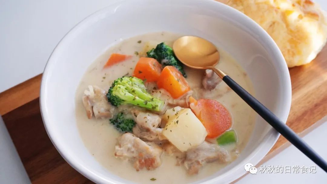 奶香十足的湯汁,鮮嫩的雞肉,燉的酥爛的土豆和胡蘿卜,只需要用到鹽和胡椒粉調(diào)味的日式奶油燉菜有它獨特的溫柔,正是因為調(diào)味簡單,才能更好地去體會各種食材帶來的不同風味哦。