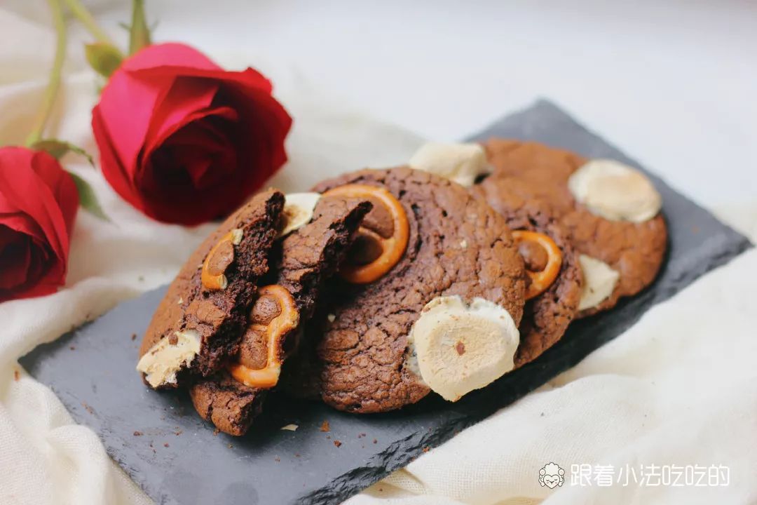 一直很喜歡這種美式大曲奇看著就很過癮!今天分享的這款餅干里不僅有甜度適中的黑巧克力碎表面還有棉花糖和椒鹽餅干真材實料,非常好吃!熱乎乎的棉花糖烤完還能拉絲,特別有食欲椒鹽和焦糖棉花糖又豐富了口感墻裂安利給你們!