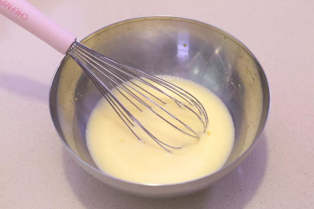 ②再加入玉米油攪拌均勻;加入水攪拌均勻。