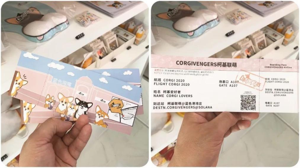 ▲圖注:狗狗介紹冊(cè) | 圖源:別人家的寵物店柯基們還有自己的職位。如一只名為Cooper的黑色柯基,它是柯基聯(lián)萌的“店長(zhǎng)”,主要負(fù)責(zé)在場(chǎng)外區(qū)接客。羅里安介紹,因?yàn)镃ooper最懂事聽(tīng)話,不會(huì)隨便跟著人亂跑,客戶進(jìn)店時(shí)還會(huì)跑過(guò)去迎接,熱情好動(dòng)的性格比較適合“店長(zhǎng)”這個(gè)崗位。同時(shí),店里柯基周邊的設(shè)計(jì)原型,也是店內(nèi)的狗狗,羅里安表示:“根據(jù)每個(gè)狗狗的性格外貌特點(diǎn),我們都賦予它們擬人化的形象,比如店內(nèi)的水杯,你會(huì)發(fā)現(xiàn)顏色不同,每個(gè)顏色都對(duì)應(yīng)一只柯基,這些顏色是根據(jù)狗狗的性格而定的,設(shè)計(jì)圖案也為每只狗狗量身打造?!睍?huì)員制,增加復(fù)購(gòu)柯基聯(lián)萌設(shè)置了會(huì)員卡制,充值從1000元到10000元不等,目前充卡最多的是2000元這個(gè)檔位,充卡人群多以家庭為主,也有周邊同家公司幾個(gè)人一起辦卡。藍(lán)色港灣里的客群,有很多雙語(yǔ)學(xué)校的小朋友。為了增強(qiáng)客戶黏性以及加強(qiáng)差異化,羅里安考慮疫情過(guò)后,在內(nèi)場(chǎng)區(qū)做一個(gè)英語(yǔ)角,供會(huì)員的小孩們學(xué)習(xí)交流。羅里安曾有國(guó)外生活的經(jīng)歷,口語(yǔ)不錯(cuò),正好可以充分發(fā)揮自己的優(yōu)勢(shì)。她希望給家長(zhǎng)傳遞一種信號(hào),孩子在這里不僅可以玩。還可以學(xué)到一些知識(shí)。她表示:“有可愛(ài)毛絨動(dòng)物的氛圍,或許在記憶單詞和主動(dòng)性上,會(huì)有出乎意料的結(jié)果?!遍T票兌換活動(dòng),增加到店頻次進(jìn)入咖啡廳需要購(gòu)買門票,門票的設(shè)計(jì)上,羅里安也花了心思。設(shè)計(jì)成一張機(jī)票樣式,“因?yàn)榭禄摹盎弊种C音“飛機(jī)的機(jī)”,所以我們把門票設(shè)計(jì)為機(jī)票的模樣,進(jìn)門的時(shí)候工作人員也會(huì)像登機(jī)時(shí)需要撕掉一個(gè)券,客戶拿著剩余的券可以保留作為紀(jì)念。”