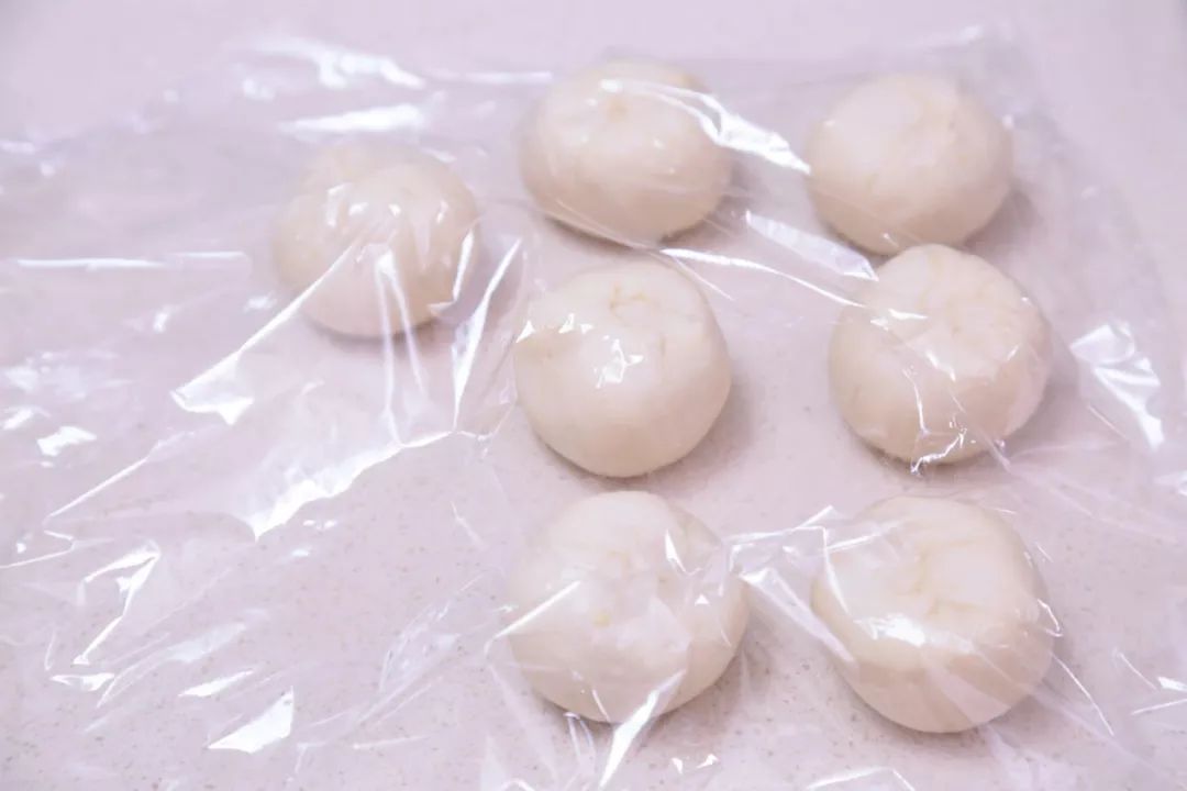 ④從一端開始緊密卷起面團(tuán),放入保鮮膜中保濕。