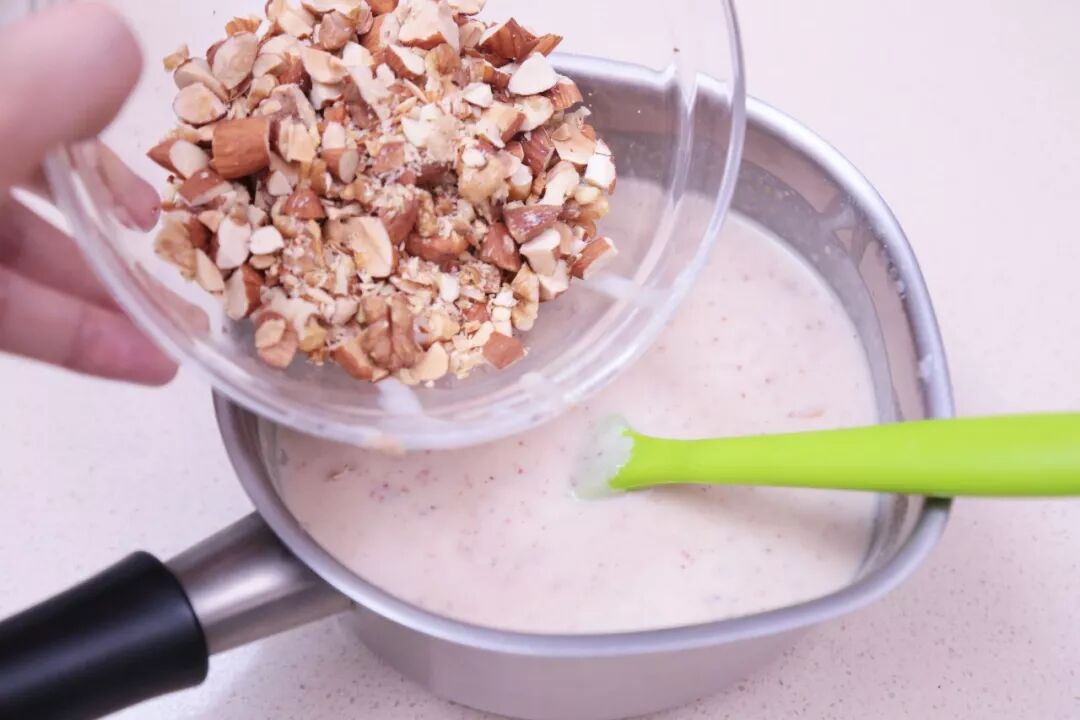 雖然咸蛋黃已經(jīng)征服了世界但是加進(jìn)冰棍里你可能還真是頭一次見這可不是我們瞎發(fā)明的黑暗料理對(duì)許多臺(tái)灣人來說這種咸咸甜甜還能咬到蛋黃和堅(jiān)果的冰棒就是伴隨著成長(zhǎng)記憶的懷念老味道~~提起臺(tái)灣人對(duì)于冰棒的回憶總是繞不開糖廠所謂糖廠就是用甘蔗榨汁制糖的國(guó)營(yíng)單位也不知道從什么時(shí)候開始全臺(tái)灣的糖廠小賣鋪都開始賣起了各種挫冰和冰棒以至于一般人想起糖廠腦中第一個(gè)念頭就是“去糖廠吃冰!”▲臺(tái)灣的糖廠小賣鋪大概就長(zhǎng)這樣雖然一般人不太關(guān)心糖是怎么造出來的但童年總有幾次跟家人或同學(xué)到糖廠吃冰的回憶~下面這些冰棒雖然自帶鄉(xiāng)村感爆棚的視覺風(fēng)格(老國(guó)營(yíng)單位審美,你懂的)但口味一字排開確確實(shí)實(shí)都是長(zhǎng)輩們最熟悉的經(jīng)典老款~除了毫無懸念的那些以外獨(dú)自擁有“咸冰棒”名號(hào)的杏仁蛋黃味在冰棒家族里就是最鶴立雞群的存在也有些地方的賣的是核桃咸蛋黃的組合但是沒有關(guān)系不管用杏仁或核桃搭配咸蛋黃都一樣好吃今天我們打算讓他們上演一出大團(tuán)圓的戲碼讓杏仁、核桃、咸蛋黃團(tuán)聚在一根冰棒里那就是TURBO版,雙倍的好吃!?。∴嵵爻尸F(xiàn)給大家~咸蛋黃核桃杏仁冰棒材料參考量:100ml/根的硅膠冰棍模具,可做6根咸蛋黃6個(gè)朗姆酒(或白酒)10g核桃40g杏仁80g牛奶400g淡奶油20g細(xì)砂糖80g煉乳 20g鹽 3g粘米粉10g水15g步驟準(zhǔn)備工作:烤箱上下火以180攝氏度預(yù)熱。①蛋黃切丁,泡在酒里約15分鐘,取出后放入烤箱以180攝氏度烘烤5分鐘備用。②將核桃、杏仁用180攝氏度烘烤5分鐘后,取一半放入食物調(diào)理機(jī)(或果汁機(jī)、破壁機(jī))加入200g牛奶攪打成均勻的糊狀。③將粘米粉加水調(diào)勻備用。④將堅(jiān)果奶漿和剩下200g牛奶放入小鍋中,加入細(xì)砂糖、鹽、煉乳用小火煮至完全融化,再倒入粘米粉水?dāng)嚢韫窜?,混合物濃稠即可離火。⑤加入淡奶油和蛋黃丁攪拌均勻。⑥將剩下一半堅(jiān)果切碎備用。⑦稍微降溫后,加入堅(jiān)果碎。⑧倒入模具中,冷凍3小時(shí)以上,至完全凍硬即可取出食用。TIP:使用硅膠模具脫模的時(shí)候別瞎拔冰棒棍,手指按壓模具底部將冰棒擠出來就可以啦!保存方法看這里冷凍可存放至少2周。看到?jīng)]有這若隱若現(xiàn)的咸蛋黃不用我多說咸蛋黃的腦殘粉看一眼就已經(jīng)不行了~(還沒算上煮堅(jiān)果奶液的時(shí)候被香到忍不住偷喝的)今天這個(gè)小妖精簡(jiǎn)直從頭到腳都標(biāo)示著大寫的“誘惑”咬一口就能啃到童叟無欺的大塊咸蛋黃再咬一口脆生生的杏仁和核桃粒接著爆出致命堅(jiān)果香(而且還是烤過的那種)混合濃郁甜美帶著微微咸香的奶液每一口都是驚喜在期待著什么時(shí)候再吃到下一顆咸蛋黃粒的時(shí)候一根冰棍就吃完了回過神的時(shí)候雙手居然不聽使喚地又開了冰箱門?。?!呀啊啊啊啊~~完全控制不住寄幾真的就是這么可怕甜品制作&圖文編輯:梅梅攝影:梅梅&CONY想要不錯(cuò)過好配方記得給i烘焙加星標(biāo)哦!如何加星標(biāo),看下面的小視頻就知道啦▼▼▼▼看完教學(xué),接下來干啥?如果大家跟著我們的配方勤奮地親手制作了美美的成品歡迎交作業(yè)跟我們分享?。ń涣俗鳂I(yè)以后,記得每周一、三、四、六來看文章呀~ 獎(jiǎng)品逾期不候哦?。╅L(zhǎng)按識(shí)別下圖二維碼交作業(yè)▼ ▼ ▼幸運(yùn)入選的優(yōu)秀作業(yè)我們會(huì)送出超實(shí)用獎(jiǎng)品學(xué)廚小奶鍋歡迎大家踴躍交作業(yè)~~