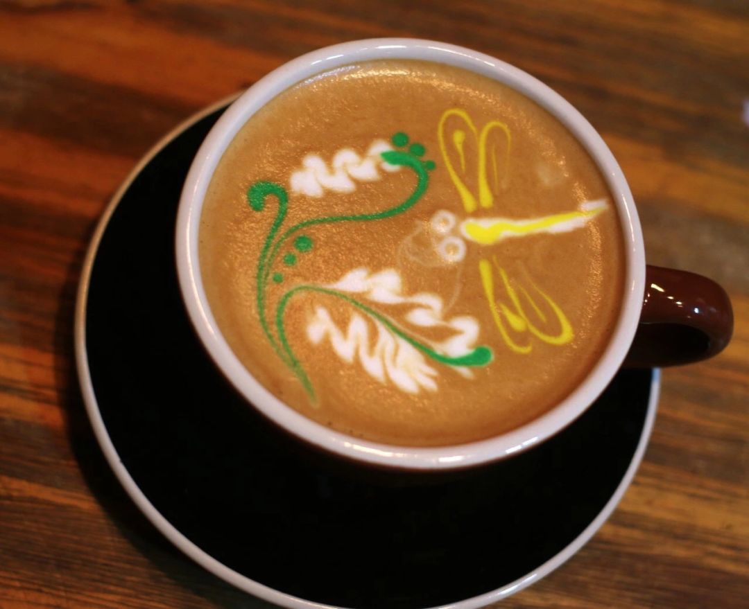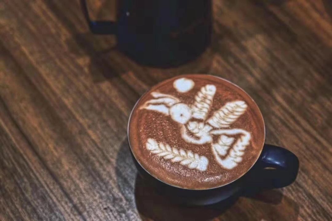 當(dāng)奶泡與Espresso充分融合,表面會(huì)呈現(xiàn)濃稠狀,通常此時(shí)咖啡杯已半滿,下步就可正式拉花了?!庥舻目Х?,配上綿密的奶泡,在咖啡形成的圖案,令人驚艷且愉悅,也許,這就是拉花的魔力吧!